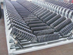 缓冲托辊安装在输送机受料段的下方,减小落料时物料对输送带的冲击,以延长输送带的使用寿命.缓冲托辊的间距一般100-600毫米。
